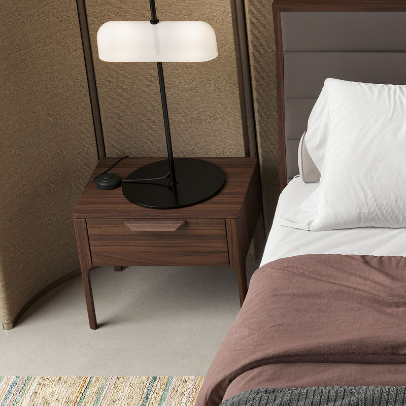Прикроватная тумбочка, изготовлена из высококачественного, шпонированного МДФ высокой плотности.