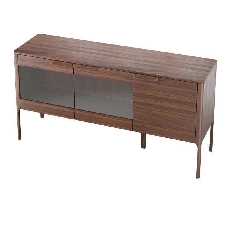 У буфета 2 стеклянные и 1 деревянная дверка.