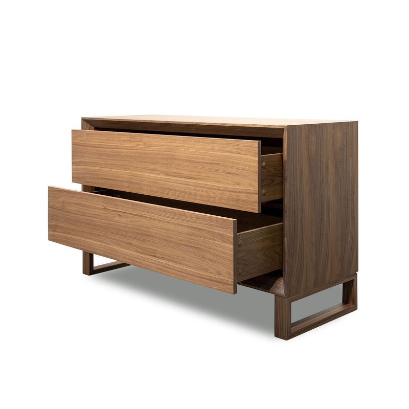 Модель имеет 2 просторных ящика с плавным открыванием обеспечивают тотальный комфорт, позволяя организовать хранение одежды, аксессуаров и других предметов. Чистота линий и эстетичные детали придают комоду современный вид, а его универсальность делает его подходящим как для спальни, так и для гостиной.