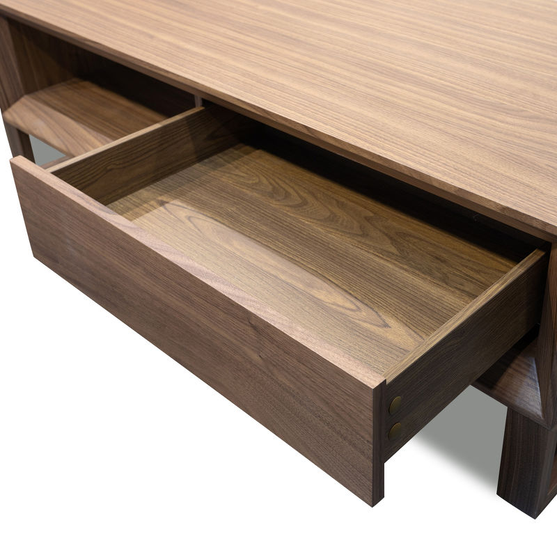 Отделка из качественного шпона американского ореха столик демонстрирует богатство текстуры и глубокие природные оттенки, создавая атмосферу тепла и уюта. Каркас изделия из высокопрочной МДФ. Плавные линии и гармоничные пропорции делают его не только привлекательным, но и универсальным элементом, подходящим для любого стиля оформления.