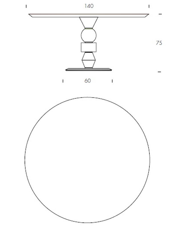 Круглый обеденный стол на фигурном основании выполнен в стиле модерн. Деревянная столешница со скошенным краем опирается на ножку из геометрических фигур из мрамора, стекла и массива дерева.
