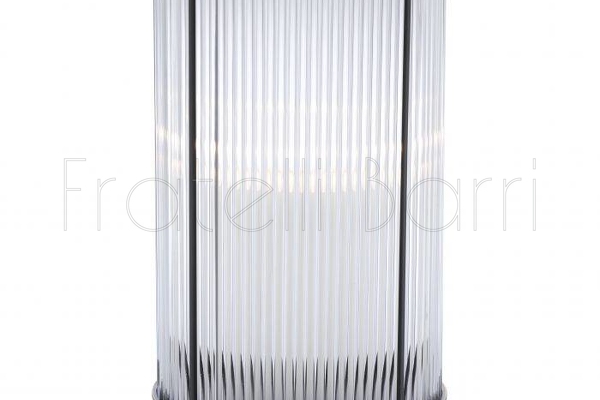 Подсвечник выполнен из латуни и прозрачного стекла с узором.