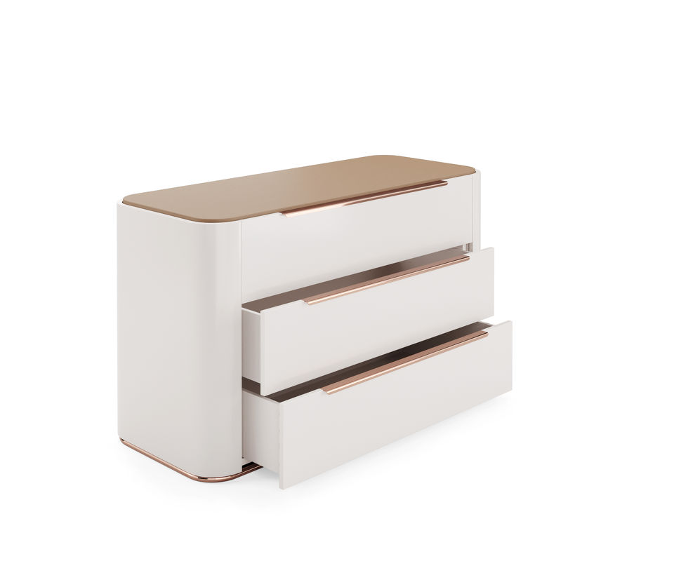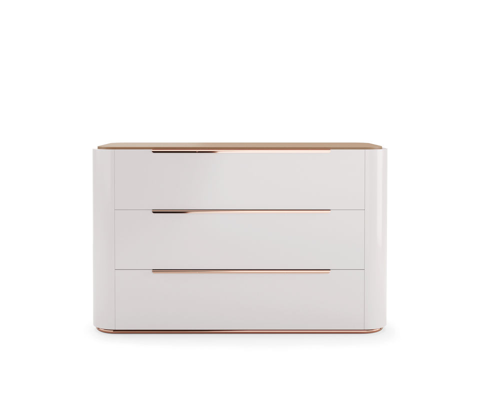 Комод от фабрики Praddy выполнен в современном стиле. Комод оснащен тремя выдвижными ящиками. Топ а отделке из натуральной кожи.