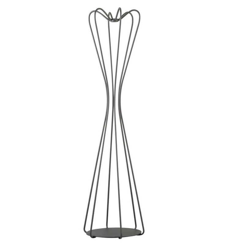 Напольная вешалка для одежды выполнена в современном стиле из окрашенного металла. Фигурная стойка из петель делает конструкцию воздушной, и не утяжеляет интерьер.