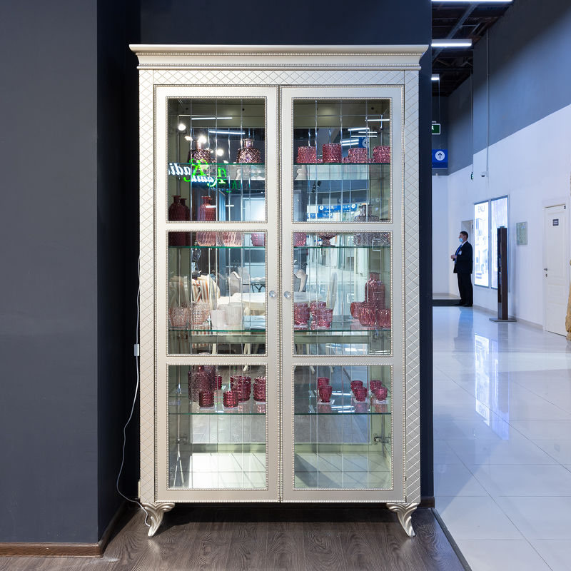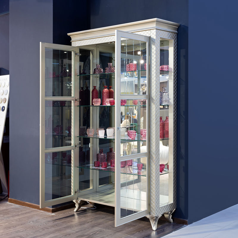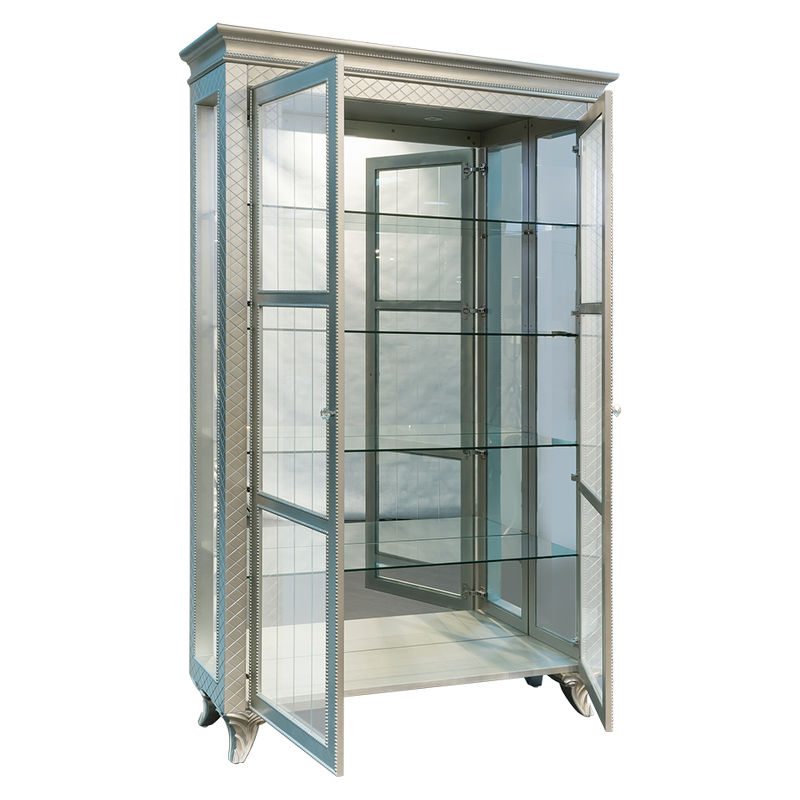 Витрина Flopence от итальянского бренда Fratelli Barri выполнен в стиле близком к классическому. Увеличенные размеры витрины делают ее отдельным арт-объектом, притягивающим все взгляды. Серебряная отделка придает мебели этой коллекции особенную привлекательность. Акцентные ручки хрусталики.