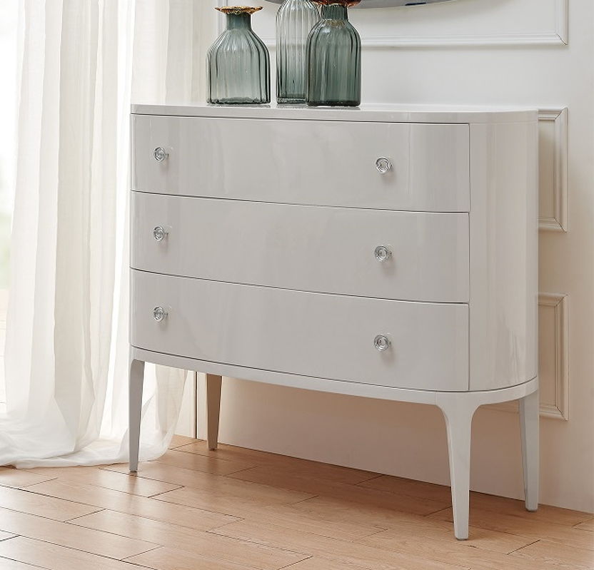 Комод на высоких ножках выполнен в стиле ар деко. Оснащен тремя выдвижными ящиками. Скругленные углы и плавные линии подчеркивают оригинальность модели.