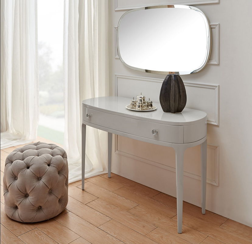 Консоль на высоких ножках выполнена в стиле ар-деко. Оснащена выдвижным ящиком. Скругленные углы и плавные линии подчеркивают оригинальность модели.