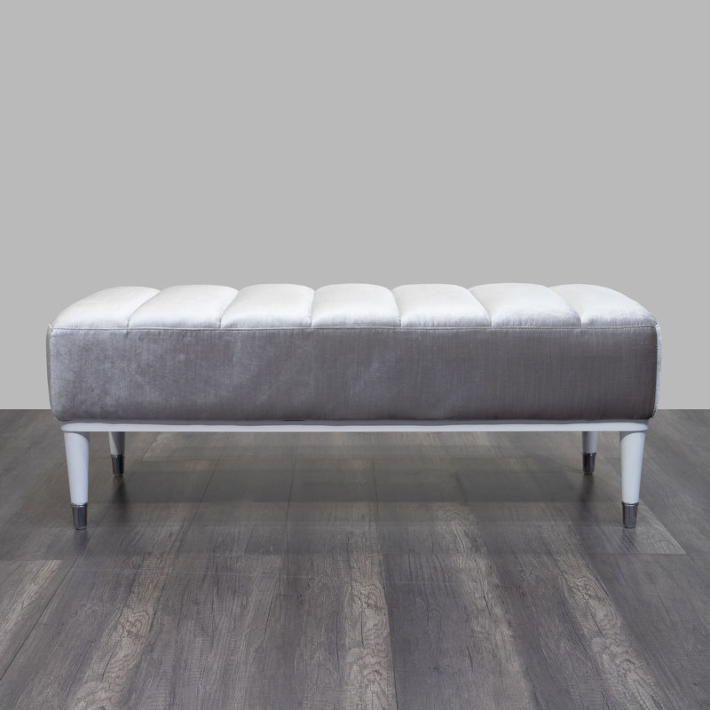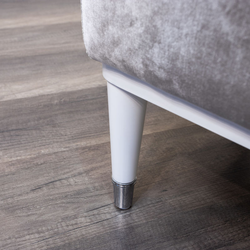 Банкетка, отделка белый глянцевый лак, ткань серебристо-серый велюр