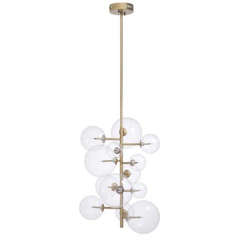 Выбираете между винтажным и современным дизайном? Вы можете получить и то, и другое с люстрой Ezra от Eichholtz. Эта красивая подвесная лампа осветит вашу гостиную своим сверкающим внешним видом. Ее тонкая ножка имеет каркас из античной латуни и содержит гроздь прозрачных стеклянных сфер. Разместите несколько штук на разной высоте, чтобы создать красивую акцентную гроздь.