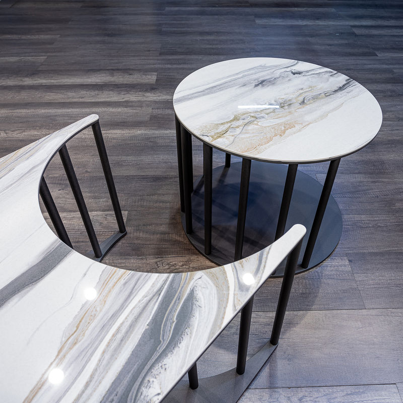 Журнальный столик Sinergy (комплект из 2), отделка серый лак Carbon, глянцевый керамогранит Terra