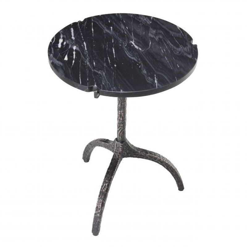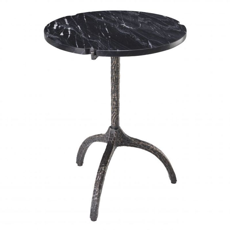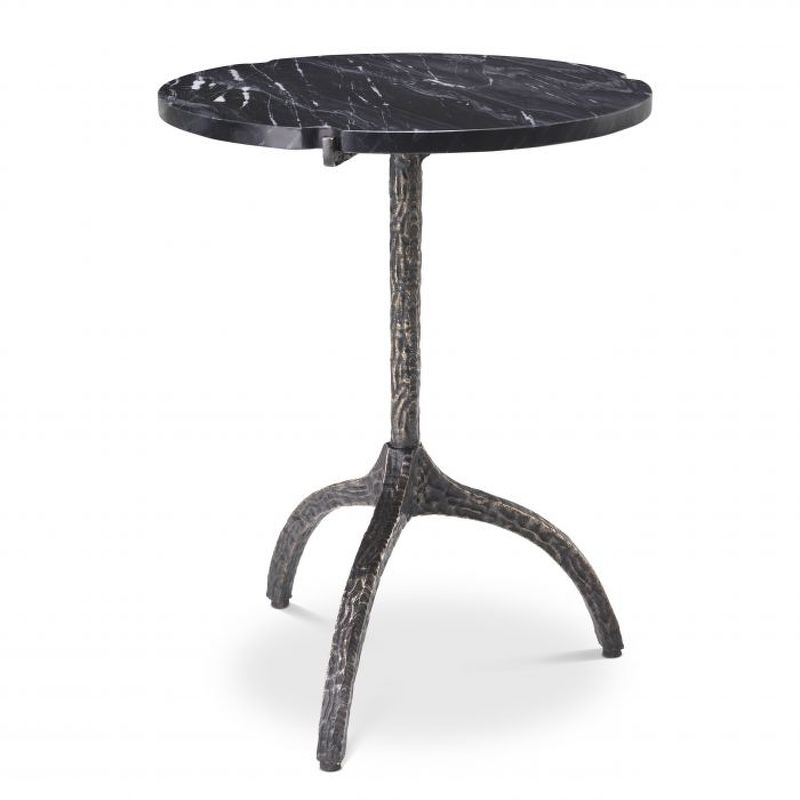 Приставной столик Cortina от Eichholtz органично сочетает роскошь и изысканность. Это культовое изделие с бронзовой отделкой и столешницей из черного мрамора имеет элегантную круглую форму.