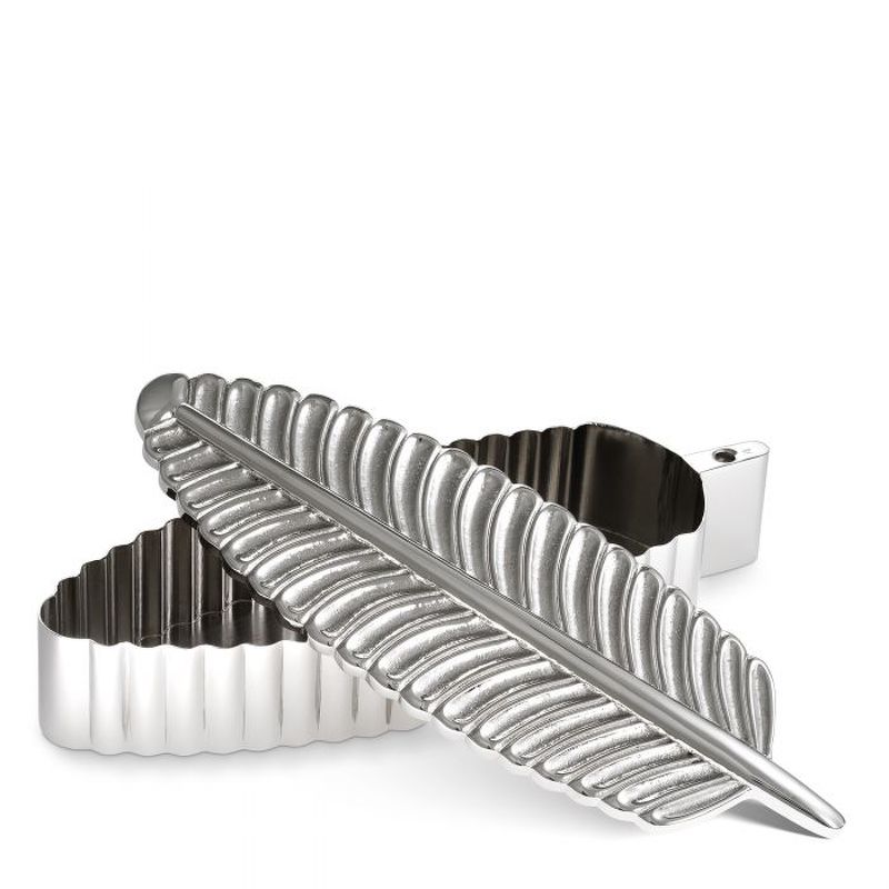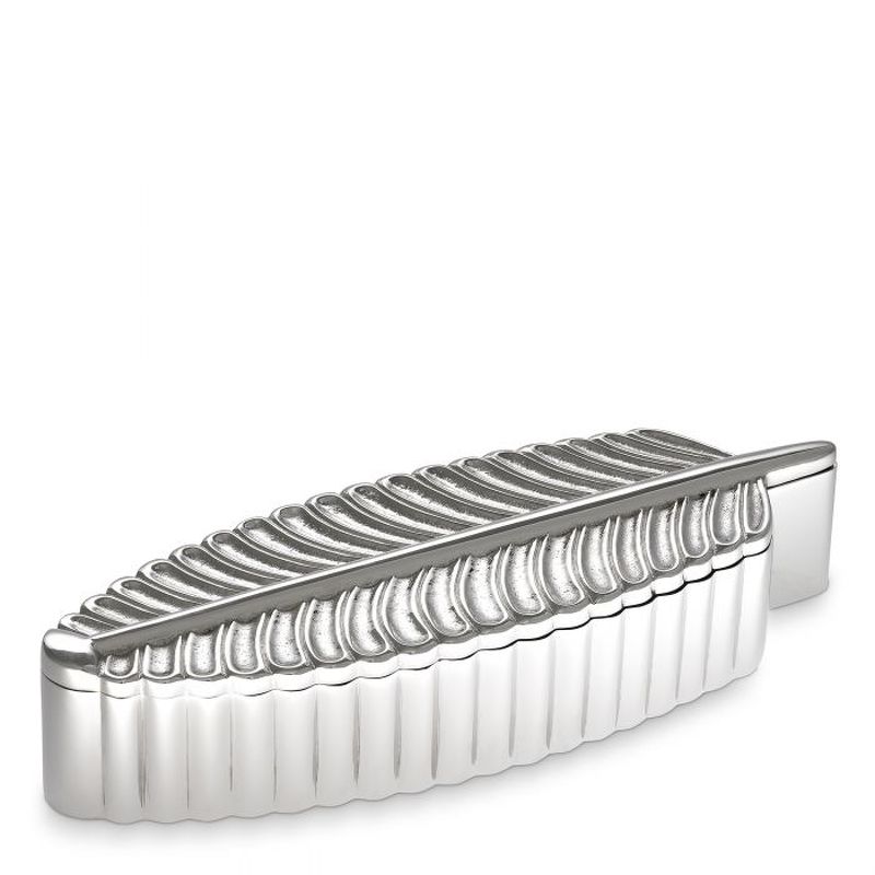Эта декоративная шкатулка в форме пера выделяется своим красивым рельефом и блестящей отделкой из полированного никеля.