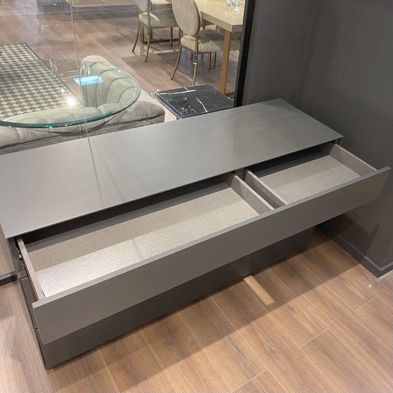 Комод от итальянской фабрики ALF Dafre, выполнен в современном стиле. Оснащен тремя выдвижными ящиками с системой открывания push pull.