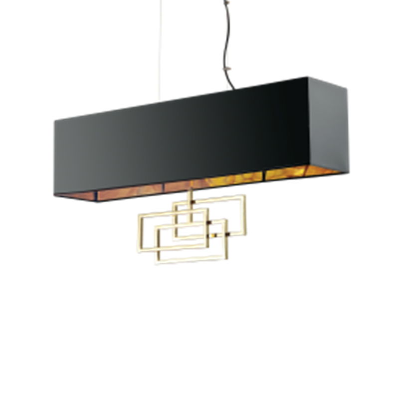 Люстра подвесная на 6 лампочек мощностью 40 Ватт (цоколь Е14). Плафоны из ткани черного цвета, матовые. Металлическая конструкция внутри плафона черного цвета, декоративный элемент в цвете матовая латунь.