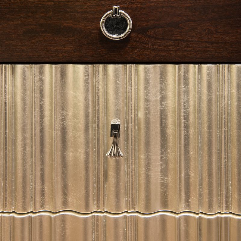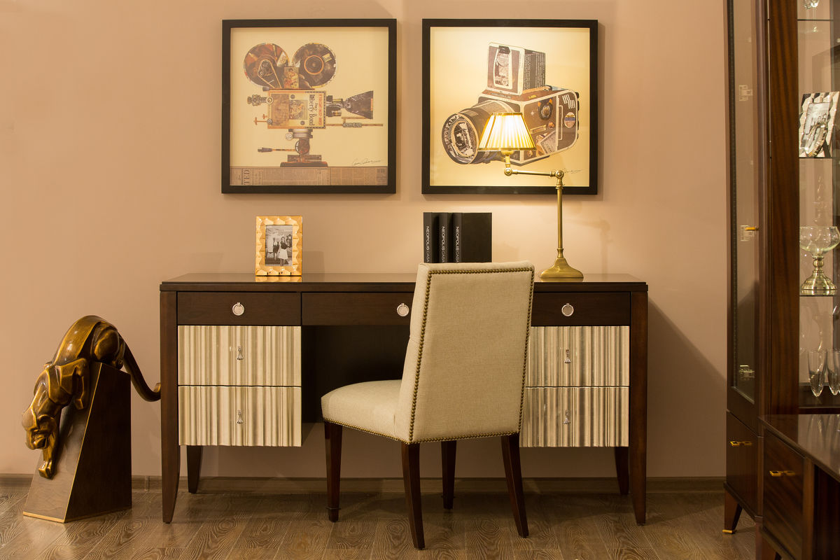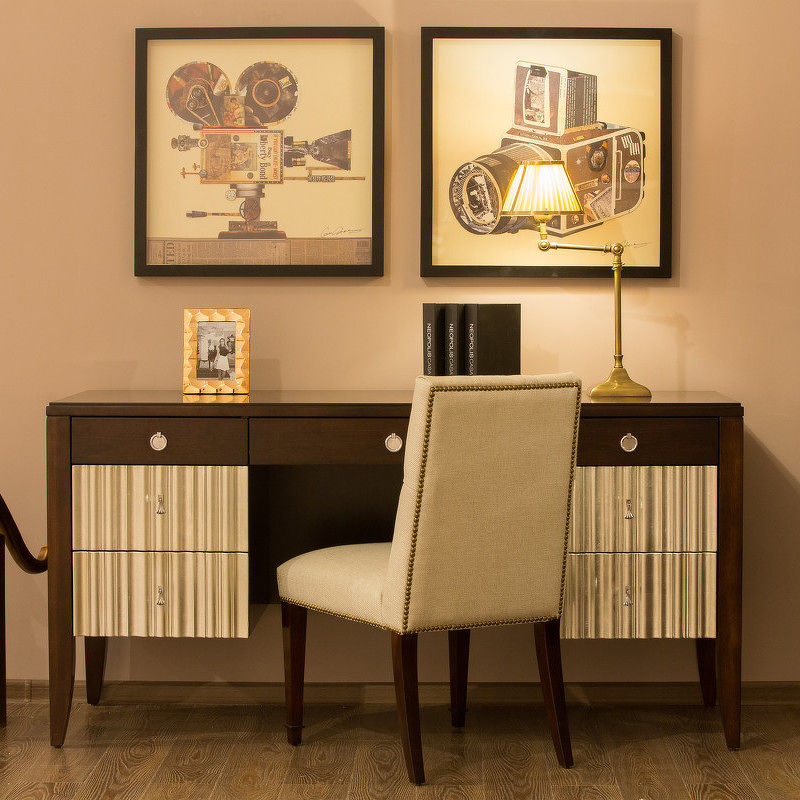 Письменный стол с 7 ящиками в стиле неоклассика от итальянского бренда Fratelli Barri. Модель имеет фронтальную часть в отделке серебряным напылением. К модели можно подобрать идентичную по дизайну прикроватную тумбочку, кровать, консоль и другую мебель.
