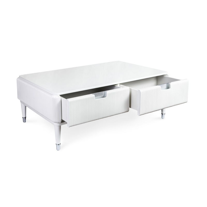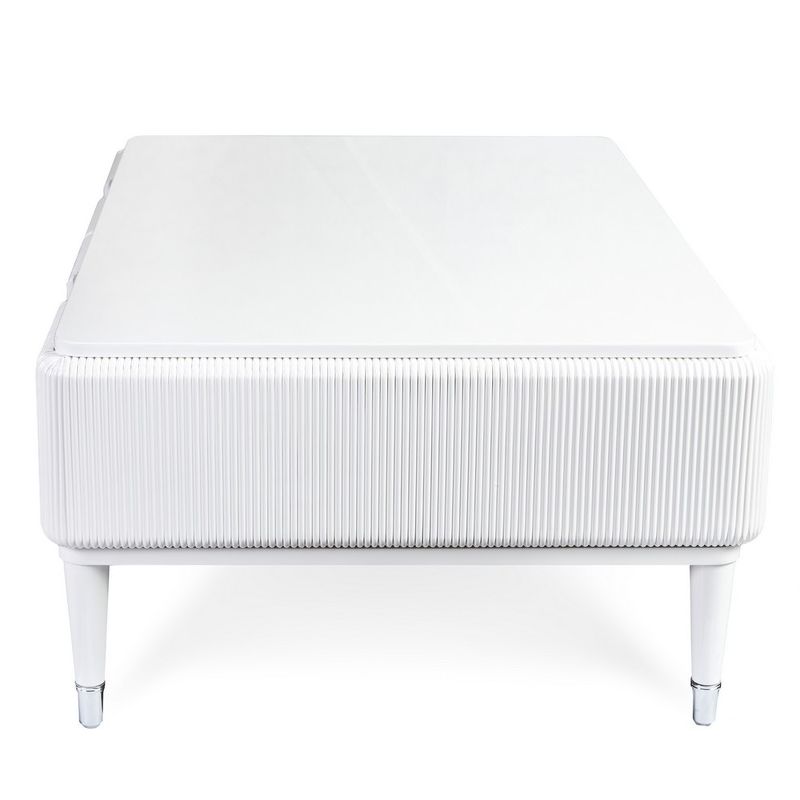 Журнальный стол, отделка белый блестящий лак, ручки хром