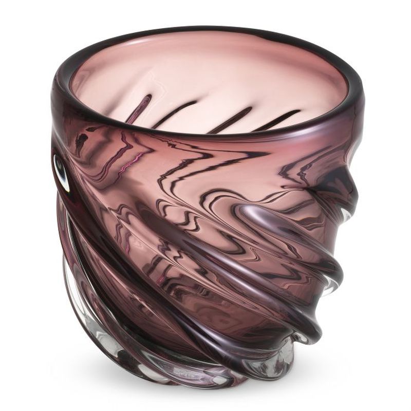 Вытянутая ваза с фигурным краем выполнена вручную из выдувного стекла.