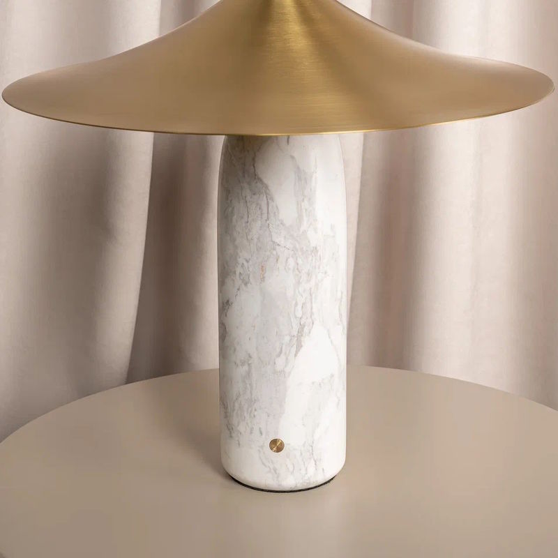 На фото в другой отделке. Светодиодная настольная лампа от испанского бренда Aromas del campo. Мраморное основание дополнено оригинальным абажуром. Лампа оснащена регулятором яркости освещения в трех режимах.