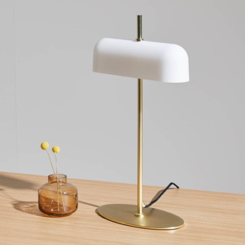 Стальное основание в цвете матовой латуни дополнено белым матовым плафоном. Минималистичный сдержанный дизайн, который адаптируется к различным стилям интерьера.