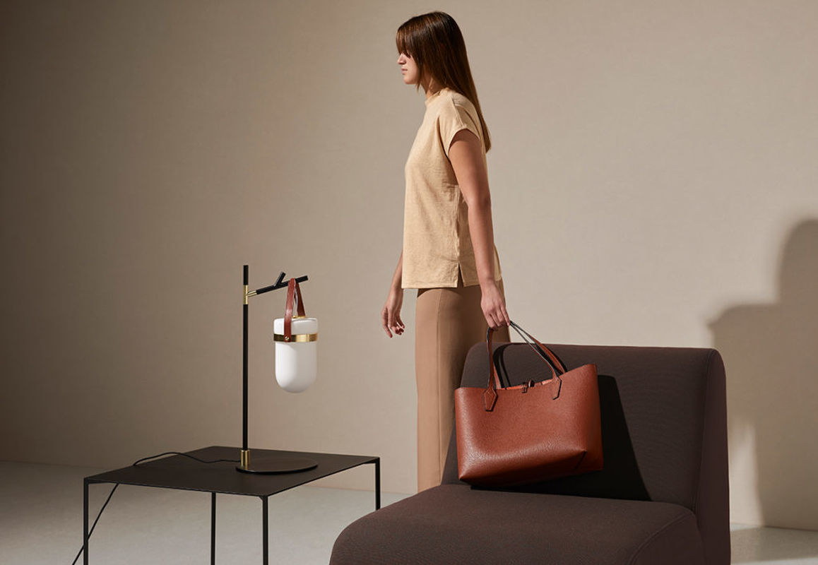 Настольная лампа Almon, отделка черный матовый, матовая латунь, белое матовое стекло, светло-коричневая кожа