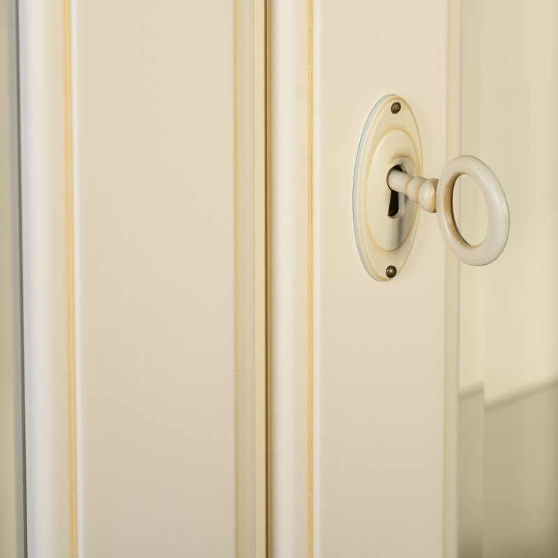 Витрина на изогнутых ножках, являющаяся частью этой коллекции, выгодно подчеркнет роскошь созданного вами интерьера. В отделке использован кремовый матовый шелковистый лак. Он полностью экологичен и не имеет запаха.