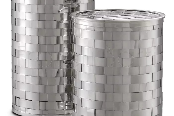 Внутри есть место для хранения мелочей или украшений, что делает его очаровательным предметом для туалетного столика. Каждая коробочка, отделанная полированным никелем, украшена привлекательным плетеным рисунком.