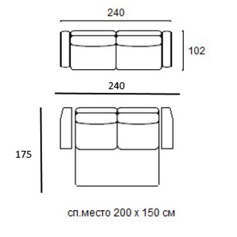 Размер спального места — 150*200 см.