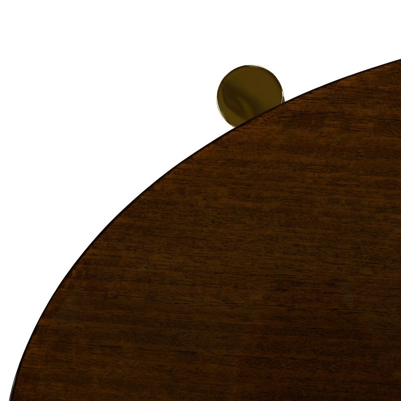 Приставной столик выполнен в стиле ар-деко. Металлический каркас столика дополнен шпонированной столешницей из высококачественного МДФ.