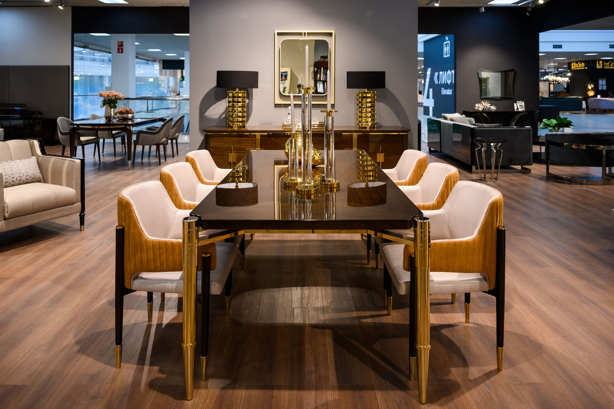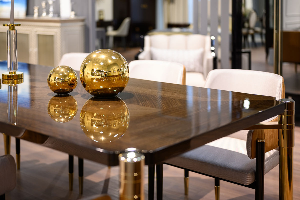 Обеденный стол Claire, отделка глянцевый эвкалипт, цвет металла золото