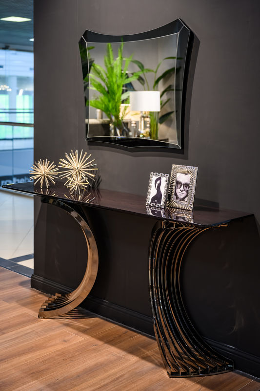Консоль Vivienne, отделка глянцевый ясень Mocha, цвет металла дымчатый хром