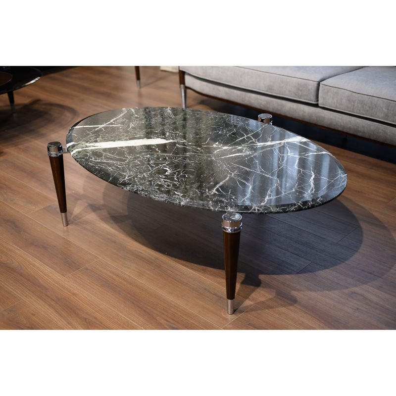 Журнальный столик Madison, отделка глянцевый орех 2018, цвет металла хром, топ мрамор Petroleum green