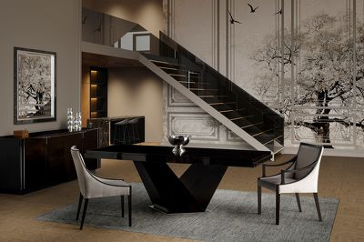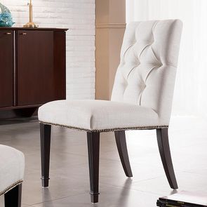 Стул с высокой спинкой, выполненный в стиле ар-деко. Каркас изготовлен из массива бука. Мягкое сидение и спинка обиты тканью из ассортимента фабрики. Фабрика предоставляет большой выбор тканей производства Италия, Испания, Бельгия и Турция.