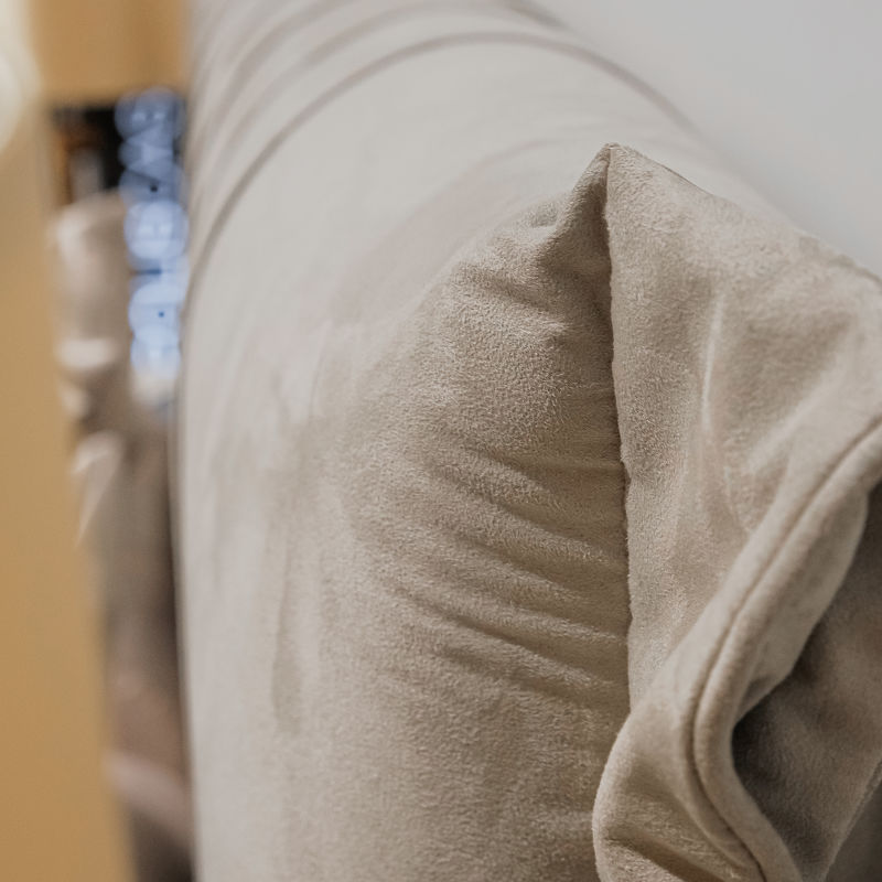 Каркас кровати выполнен из натурального массива бука. Изголовье обито тканью из ассортимента фабрики — вы можете выбрать оттенок.