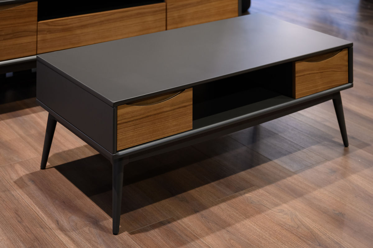 Журнальный столик из коллекции Sevilla от MOD Interiors — актуальный вариант современного европейского дизайна. Его элегантный силуэт, выполненный из качественной МДФ в отделке шпоном американского ореха в комбинации с серым матовым лаком, придает пространству легкость и воздушность.