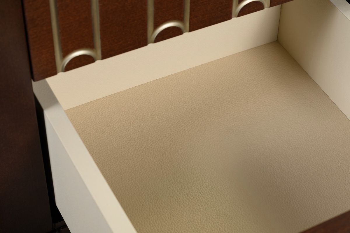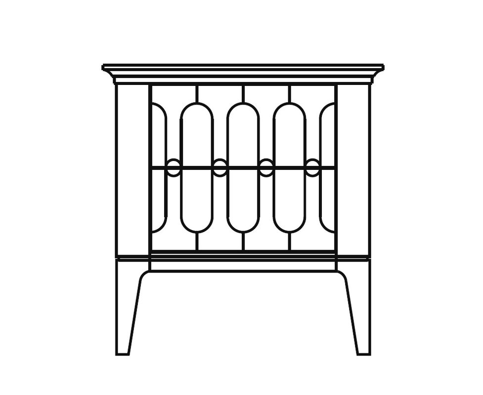 Прикроватная тумбочка на прямых ножках выполнена в стиле ар-деко. Оснащена двумя ящиками с гравировкой на фасадах и системой открывания push to open.