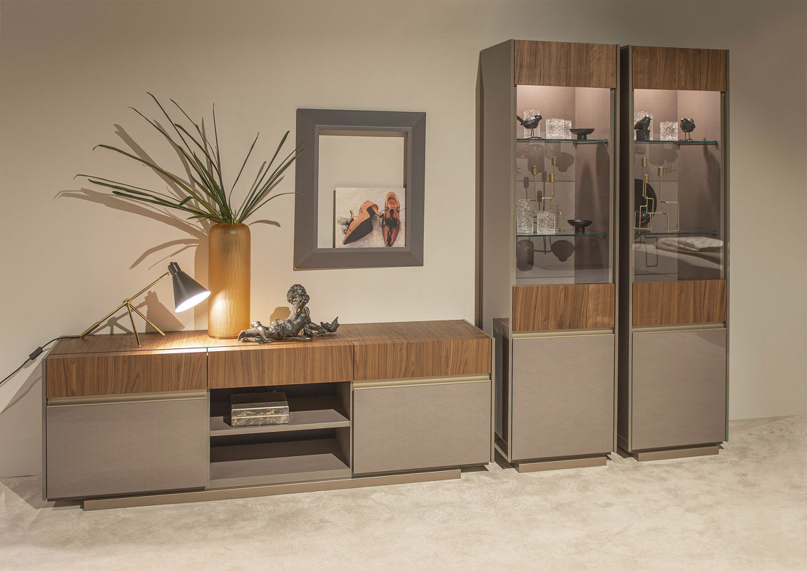 Витрина Corso Como c распашной дверкой от итальянской фабрики ALF Italia представлена в современном стиле. Отделка - натуральный шпон ореха в сочетании с глянцевым лаком. Наполнение стеклянные и деревянные полки, подсветка.