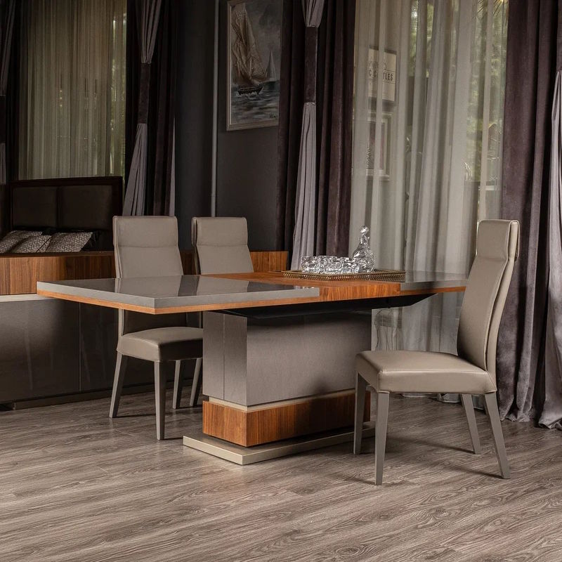 Обеденный стол Corso Como, отделка шпон ореха Beveled, глянцевый бежевый лак