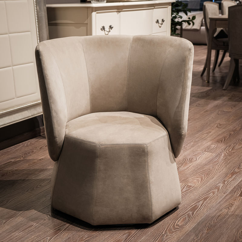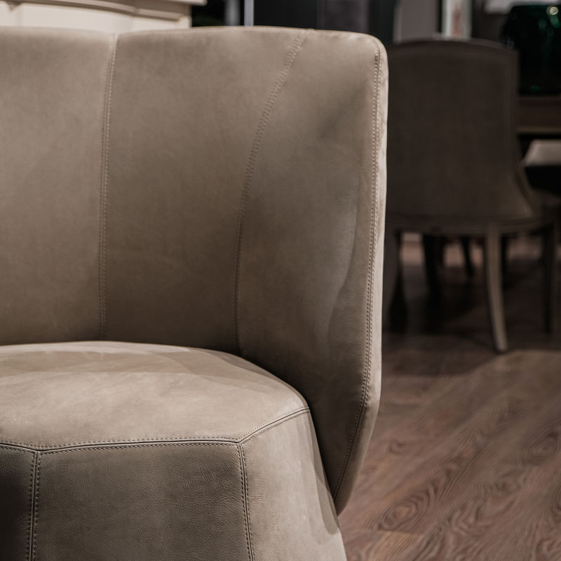 Moka – это уникальное в своем роде кресло с поворотным основанием, в котором удобство сиденья сочетается с геометрической, жесткой на вид внешней формой, вдохновленной культовой кофеваркой Bialetti, являющейся общепризнанным символом итальянского дизайнерского аксессуара. Обволакивающая спинка уменьшенной толщины украшена вертикальными швами, подчеркивающими «кутюрность» изготовления. Кресло выполнено из высококачественной натуральной кожи.
