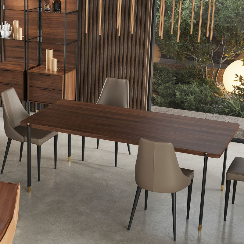 Обеденный стол от бренда Mod Interiors изготовлен из высококачественного шпонированного МДФ высокой плотности. Металлические ножки с латунными колпачками подчеркивают изысканность модели.