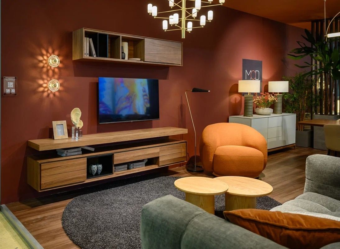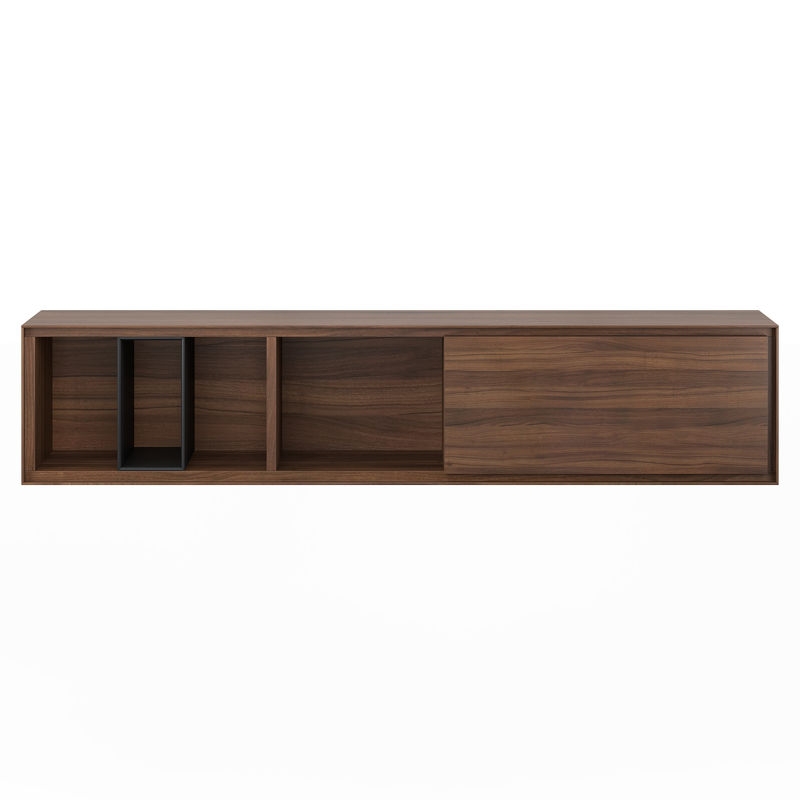 Подвесной модуль выполнен из высококачественного, сертифицированного МДФ высокой плотности. Отделка - натуральный шпон северо-американского ореха. Вставка-разделитель в открытой полке выполнена из метала и окрашена в черный матовый цвет.