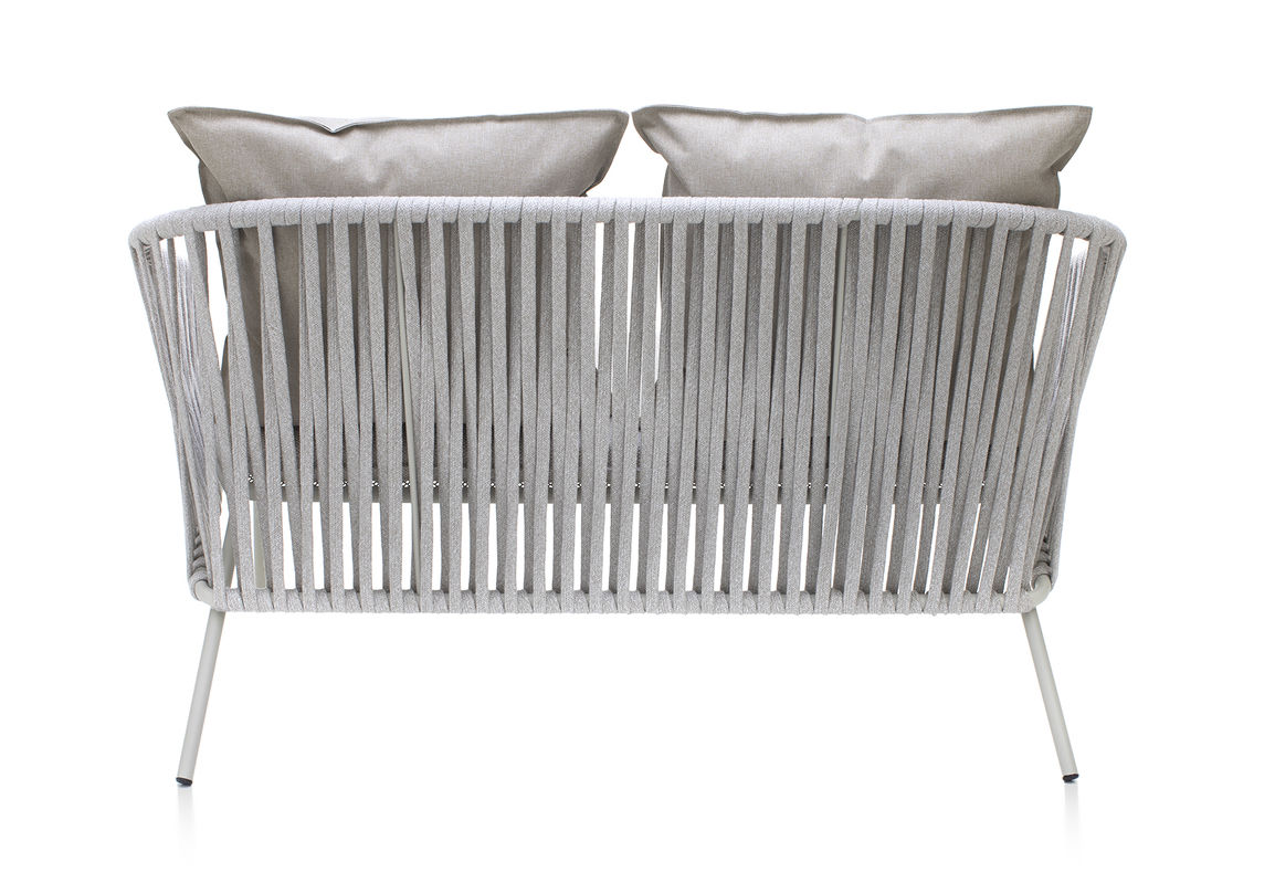 Диван из коллекции Ataman изготовлен из металла, который подвергается специальной антикоррозийной обработке. В качестве обивки выступает износостойкая и водостойкая коллекционная ткань. Все чехлы съемные, их можно подвергать машинной стирке, в том числе сам наполнитель-подушки. Веревка, используемая в модели для создания плетения, из коллекций Animo изготавливается специально для использования на открытом воздухе и состоит из синтетического материала, обладающего высокой устойчивостью к ультрафиолетовым лучам, истиранию и атмосферным воздействиям.