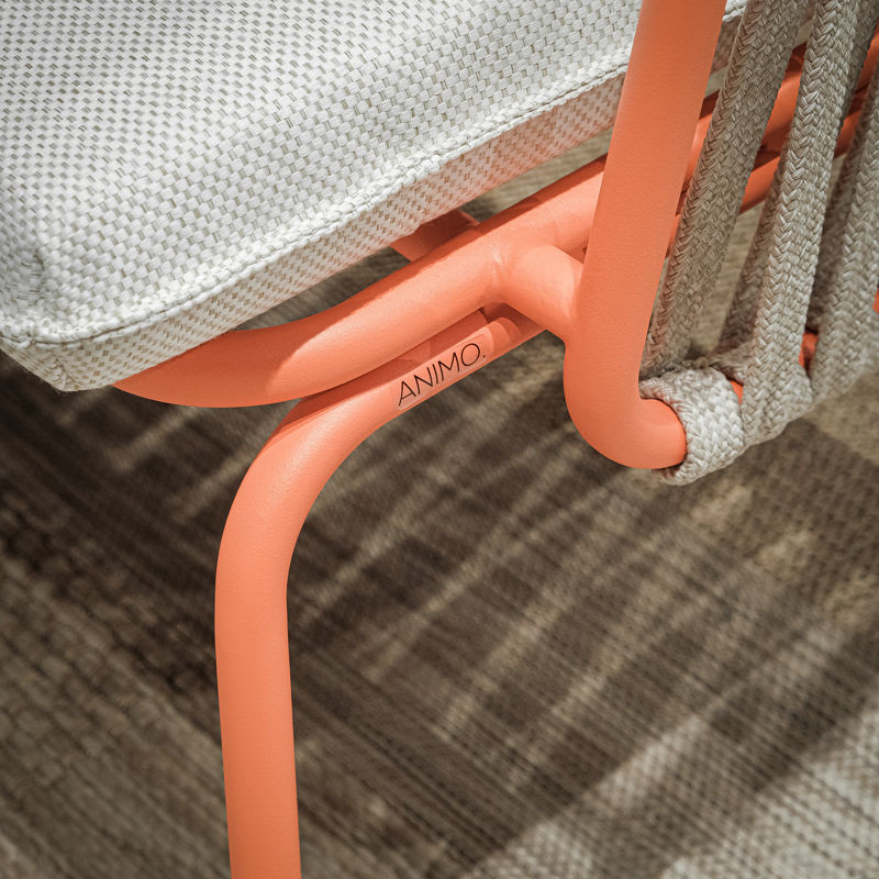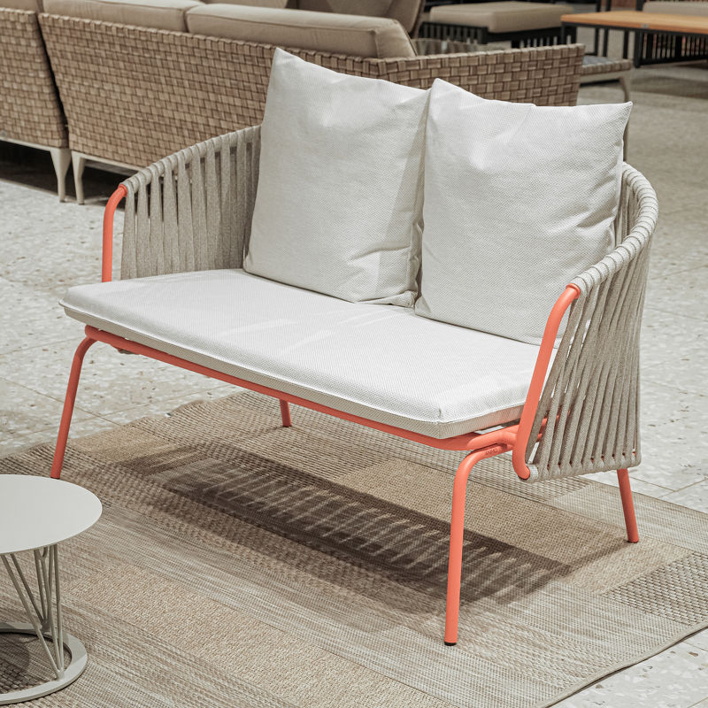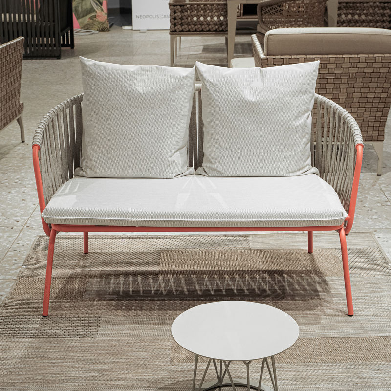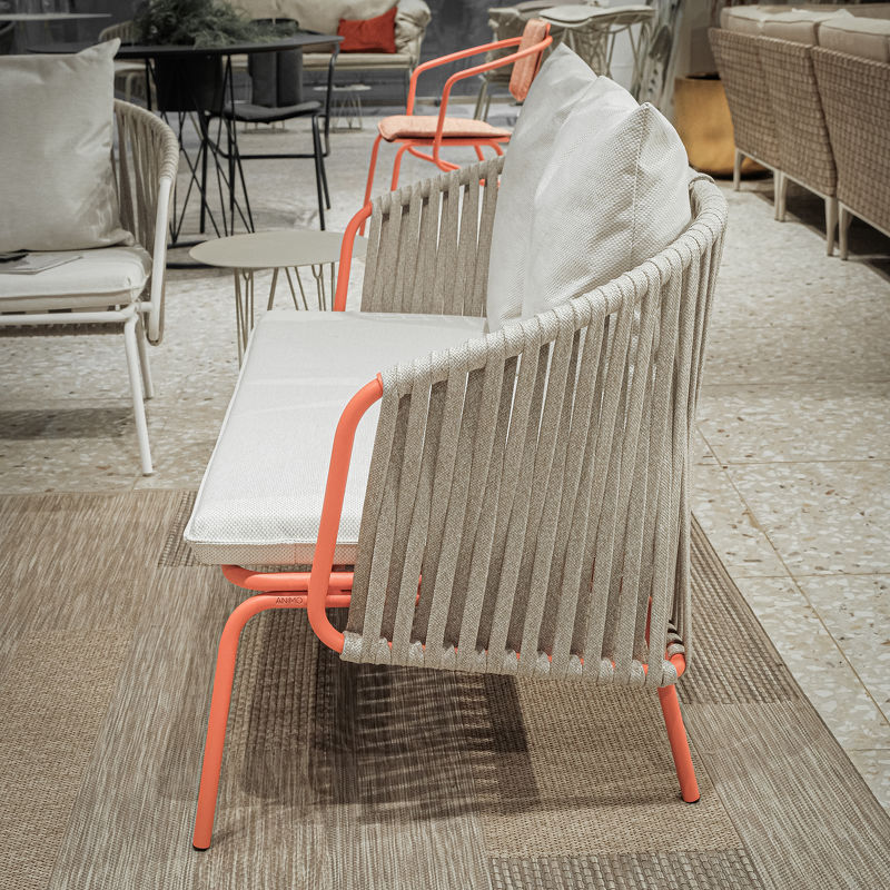 Диван из коллекции Ataman изготовлен из металла, который подвергается специальной антикоррозийной обработке. В качестве обивки выступает износостойкая и водостойкая коллекционная ткань. Все чехлы съемные, их можно подвергать машинной стирке, в том числе сам наполнитель-подушки. Веревка, используемая в модели для создания плетения, из коллекций Animo изготавливается специально для использования на открытом воздухе и состоит из синтетического материала, обладающего высокой устойчивостью к ультрафиолетовым лучам, истиранию и атмосферным воздействиям.
