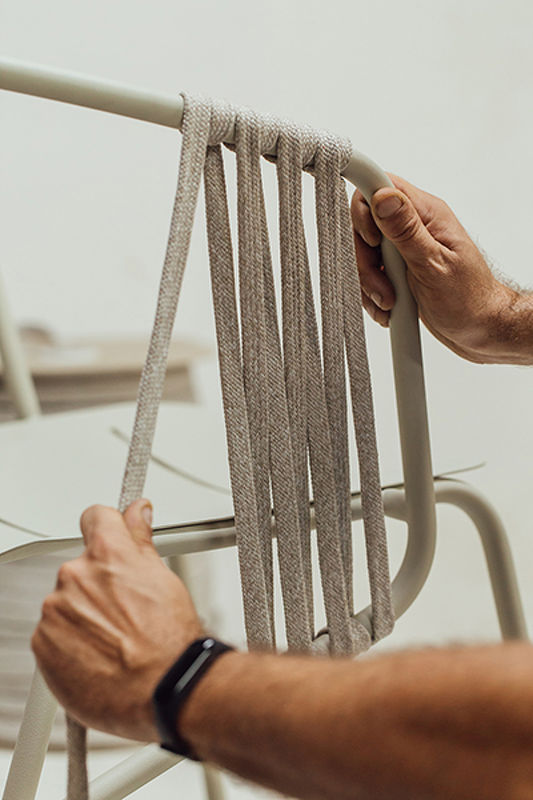В качестве обивки выступает износостойкая и водостойкая коллекционная ткань. Все чехлы съемные, их можно подвергать машинной стирке, в том числе сам наполнитель-подушки. Веревка, используемая в модели для создания плетения, из коллекций Animo изготавливается специально для использования на открытом воздухе и состоит из синтетического материала, обладающего высокой устойчивостью к ультрафиолетовым лучам, истиранию и атмосферным воздействиям.