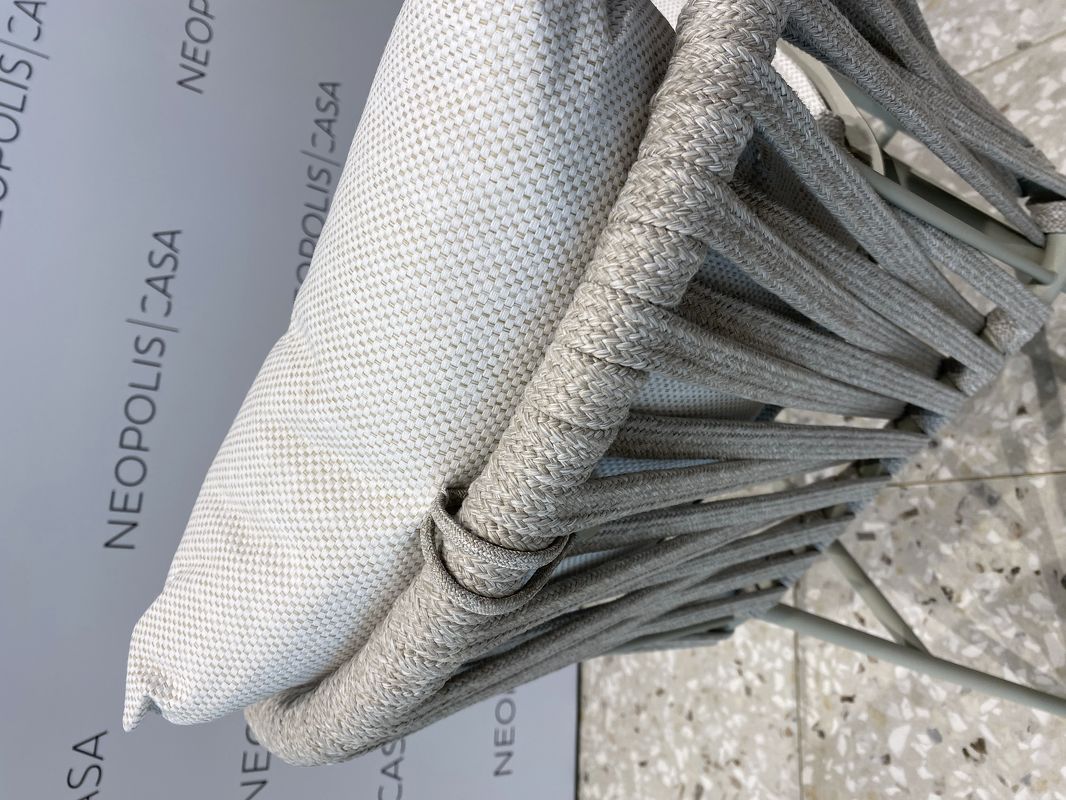 В качестве обивки выступает износостойкая и водостойкая коллекционная ткань. Все чехлы съемные, их можно подвергать машинной стирке, в том числе сам наполнитель-подушки. Веревка, используемая в модели для создания плетения, из коллекций Animo изготавливается специально для использования на открытом воздухе и состоит из синтетического материала, обладающего высокой устойчивостью к ультрафиолетовым лучам, истиранию и атмосферным воздействиям.