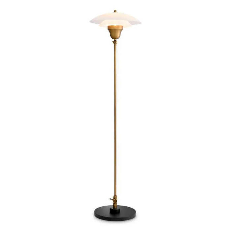 Античная латунь и черная отделка источают вневременную элегантность, а белый стеклянный абажур создает мягкий успокаивающий свет.