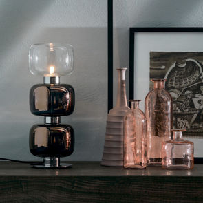 Настольная лампа Dreamy, отделка медный хром, розовое стекло, орех Canaletto