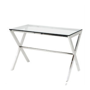 Письменный стол Criss Cross, отделка нержавеющая сталь, прозрачное стекло