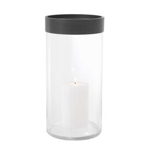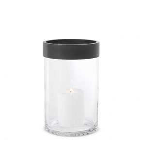 Подсвечник Hurricane Ipanema M, отделка никель, стекло smoke, кожа black