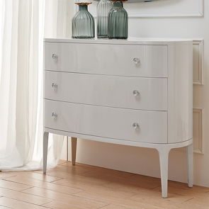 Комод, отделка бежевый блестящий лак, ручки-хрусталики
