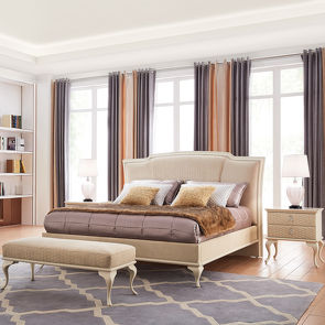 Кровать с решеткой, отделка жемчужный белый лак, ткань Tiffany-01